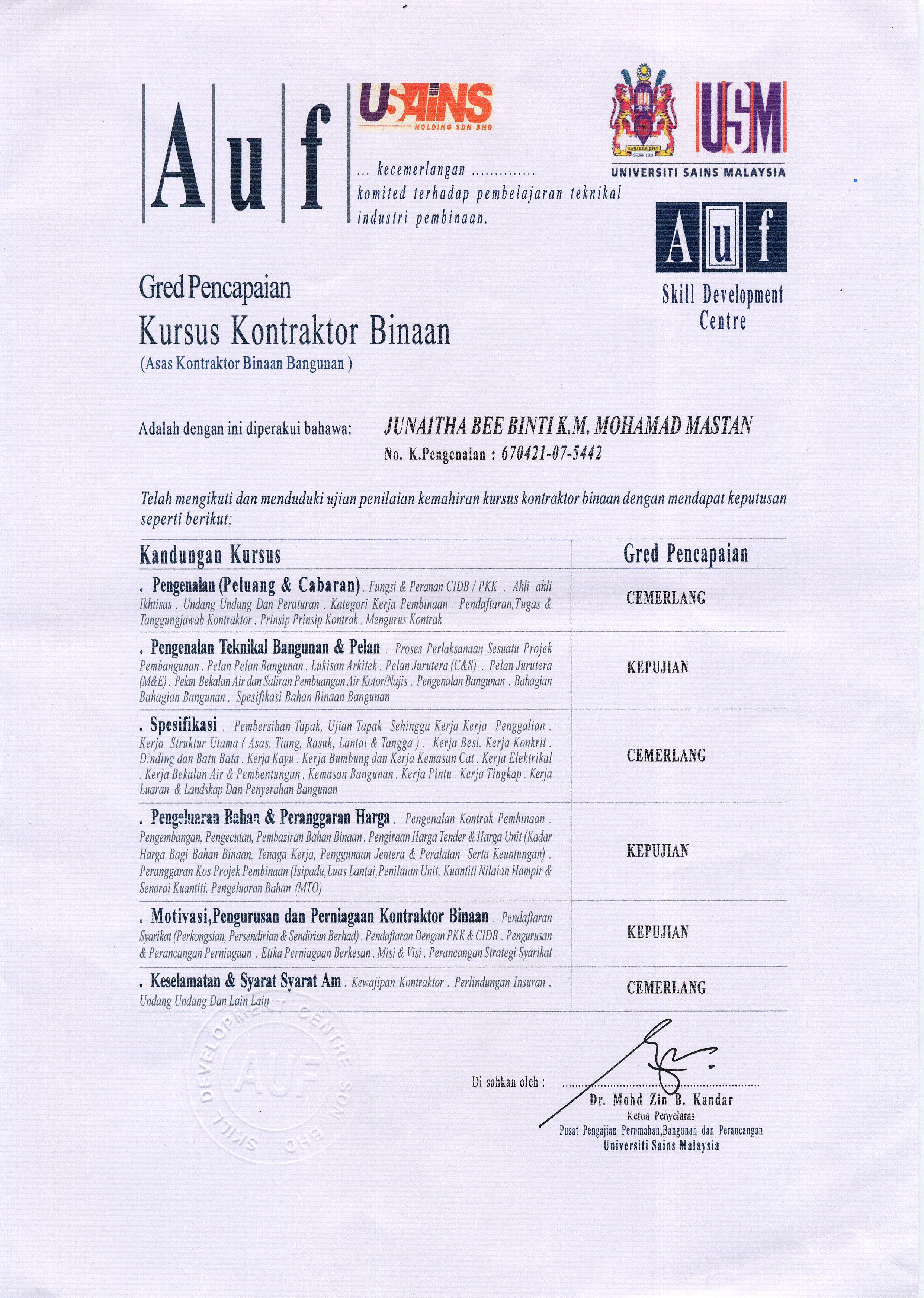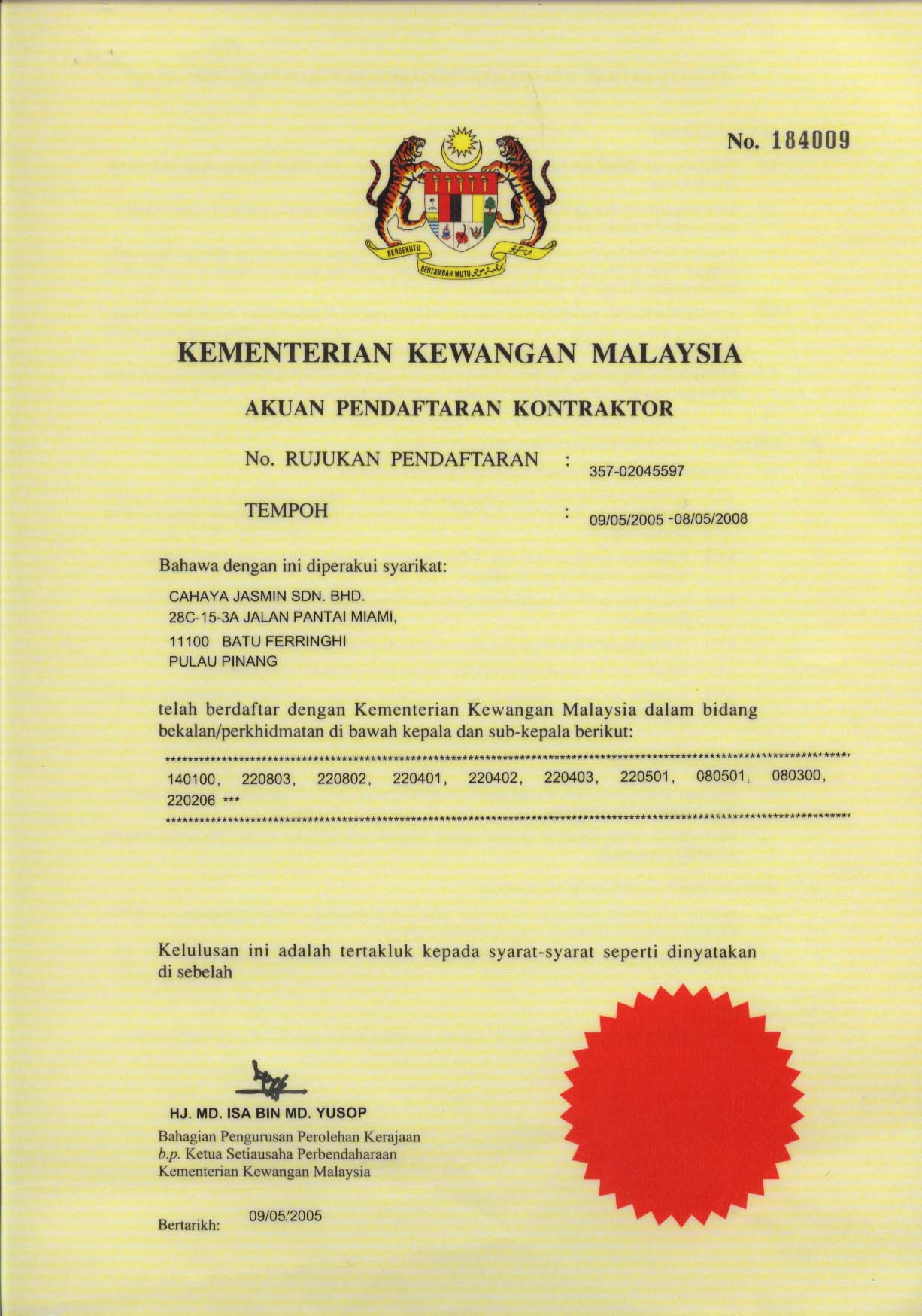 at the CIDB Malaysia as kontraktor number 0120040922-PP09879 0