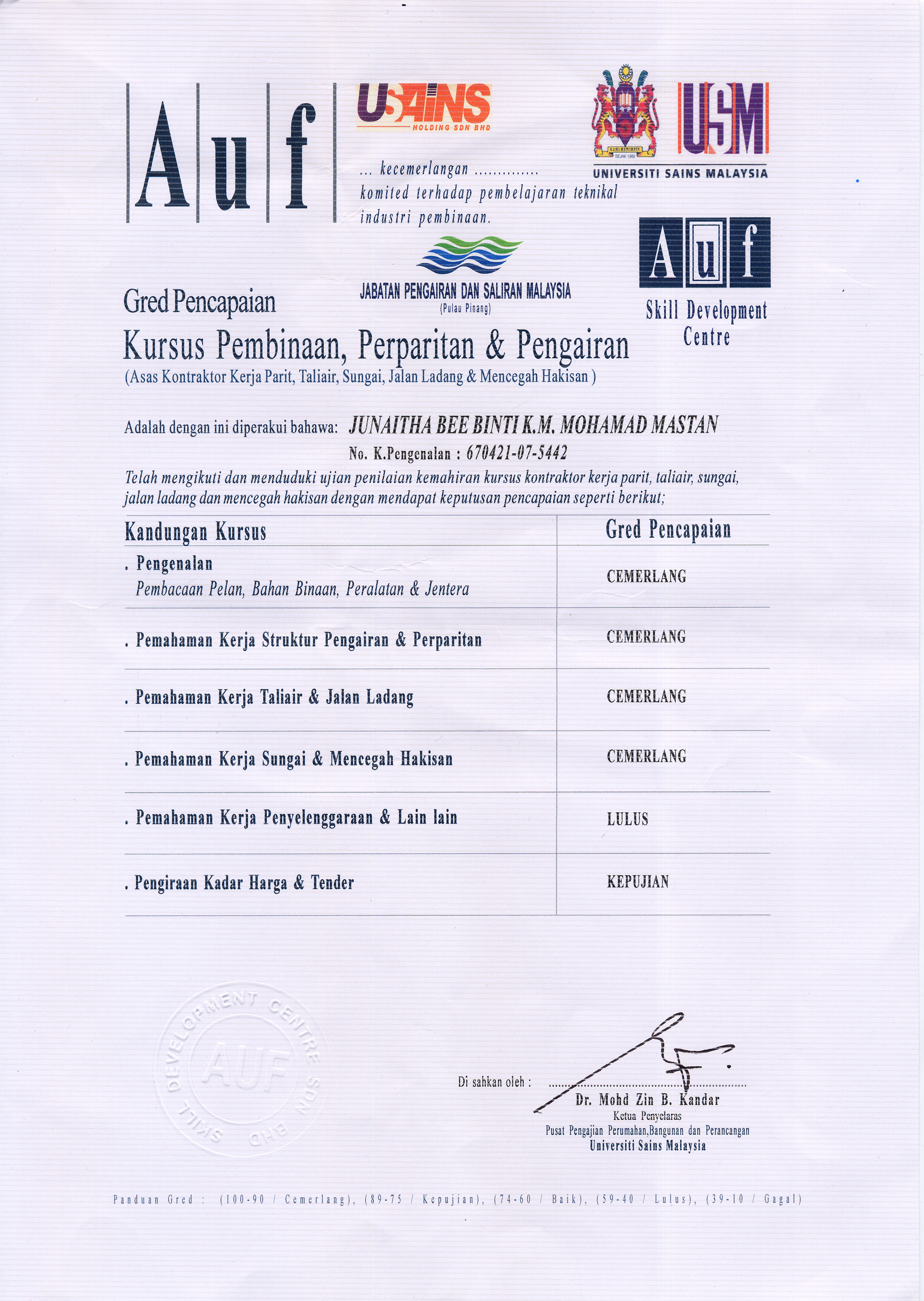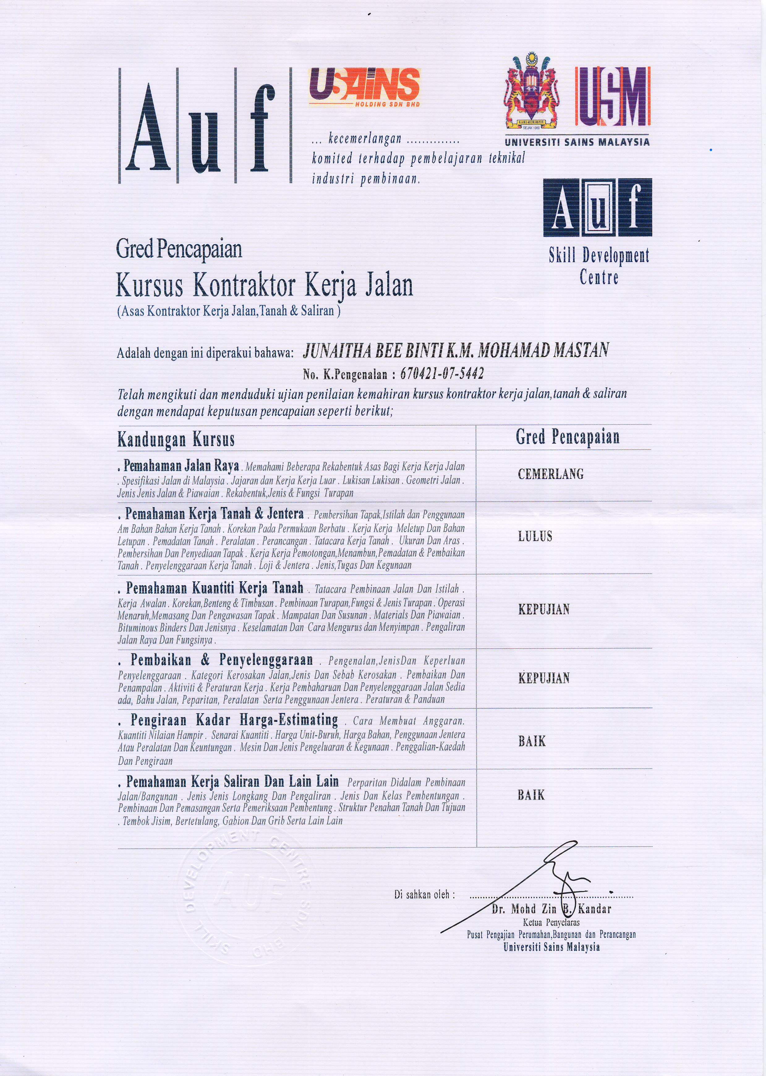 The further certificates issued by the Universiti Sains Malaysia, i.e. the